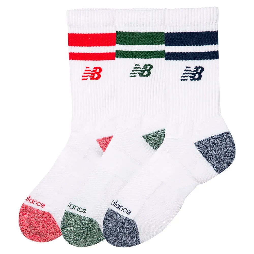 New Balance Active Lifestyle Striped Crew Socks 3 Pack - White - S