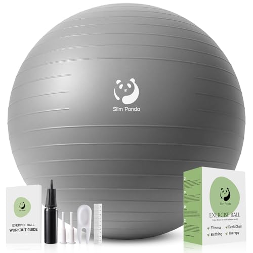 Slim Panda Pilatesballong, 55–85 cm, halkfri gymnastikboll med sugrör för uppblåsning, mjuk yogaboll, balansboll för seniorterapi, hem, fitness, balansträning