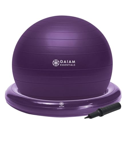 Gaiam Essentials balansboll och bas-kit, 65 cm yogabollstol, träningsboll med uppblåsbar ringbas för hem- eller kontorsskrivbord, inkluderar luftpump – lila