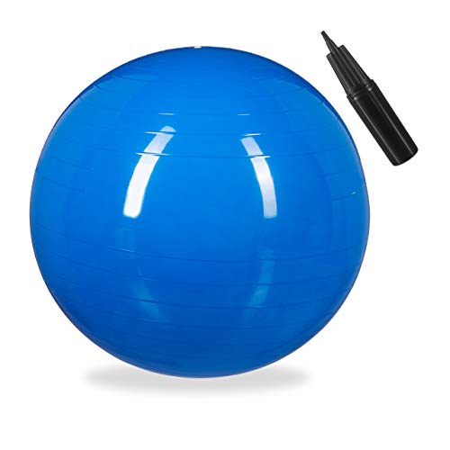 Relaxdays Gymnastikboll, fitnessboll yoga och pilates, sittboll kontor, balansboll inklusive luftpump, Ø 65 cm, blå