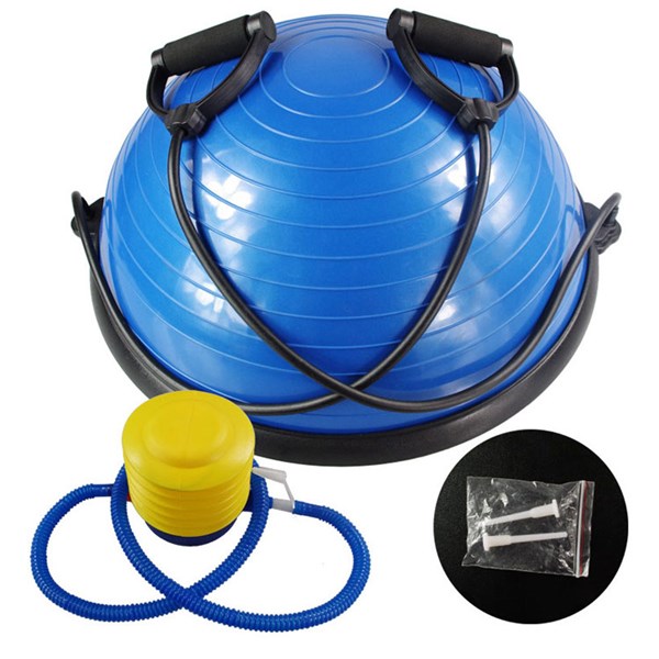 Wiltec Halvboll Ø58 cm, 25 cm hög, balanstränare, fitness boll, balansboll med träningsband för gymnastik, pilates, yoga, träning, jämnvikt balance ball