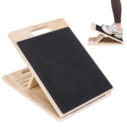 Snedbräda i trä, justerbar lutande bräda, för vadsträckare, bärbar vadstretchare, knäböjningskil, lutande balansbräda för fotben, hamstring, knän, ankelhäl stretchning träning