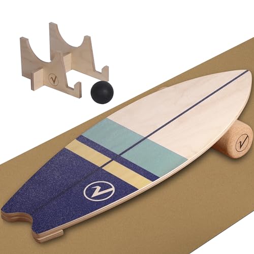 Valuents Balansbräda av trä i surfbrädeform inkl. Matta & rulle för Neuromuscular Response Training +Plus: Hållare & Ball..