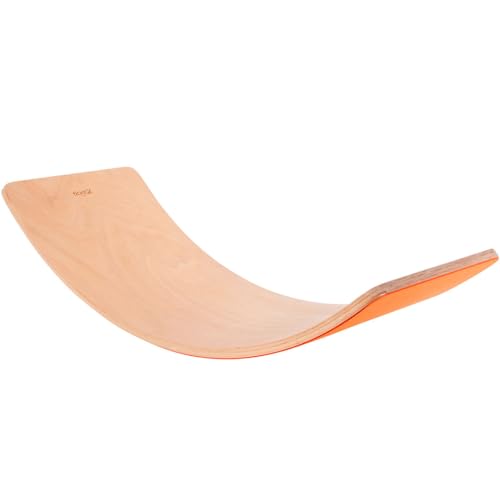 KM-Fit Balance Board | Balansbräda i trä | Inomhus skateboard inomhusbräda | Surfboard, surfbräda för koordinationsträning | Styrka och balanstränare | Inomhus surfing och skridskoåkning