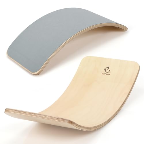 GOPLUS Balansbräda i trä, kurvig bräda med filtundersida, balanseringsbräda för barn och vuxna, 90 cm x 40 cm