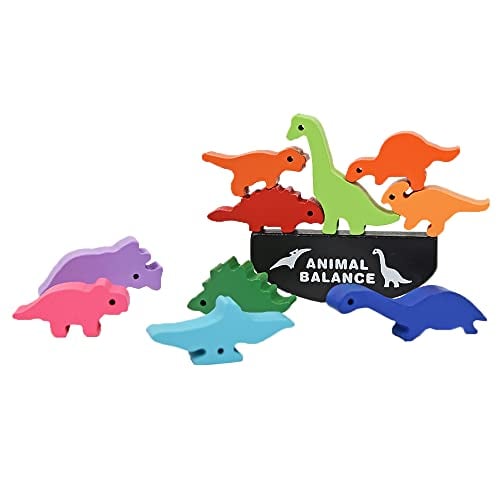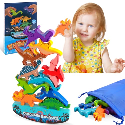 Vicloon Stapelbara Trä Dinosaurie Byggklossar, Montessori Träleksak, Trä-Stapelspel, Pedagogiskt Balansspel, Födelsedagspresent till Barn 3-6 år (Stor)