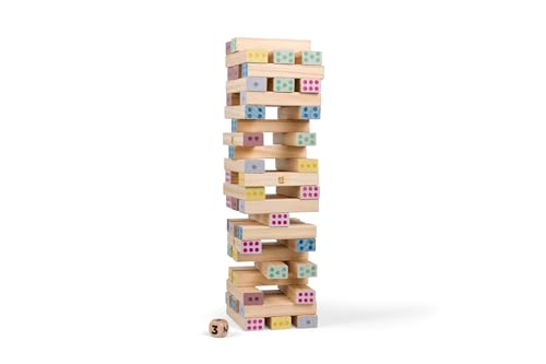 BS Toys Jätte siffertorn i trä - pedagogiskt balansspel med 48 block och tärningar - utvecklar koordination och koncentration