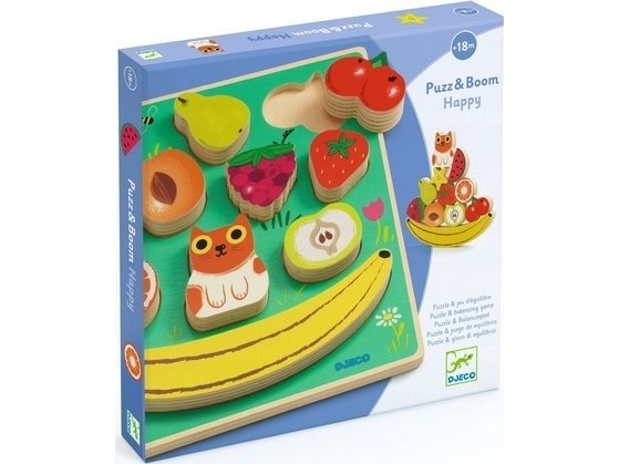 Pussel och Balansspel 11 Bitar Motiv med Frukter och en Katt, Djeco