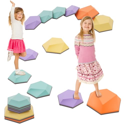 Balanseringsstenar för barn,6 halkfria stapelbara balanseringsstenar,balansspel för barn,hinderbanor för barn för inomhus- och utomhusbruk,främjar balans och koordination