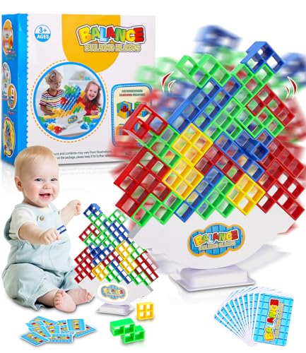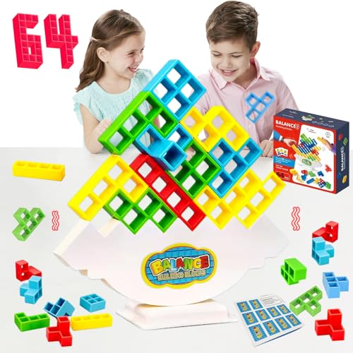 64 Tetra Tower Balance Game,Montessorispel balansspel balans-leksak torn spel stapel barn byggstenar balansspel Montessori leksak gåva för pojkar och flickor