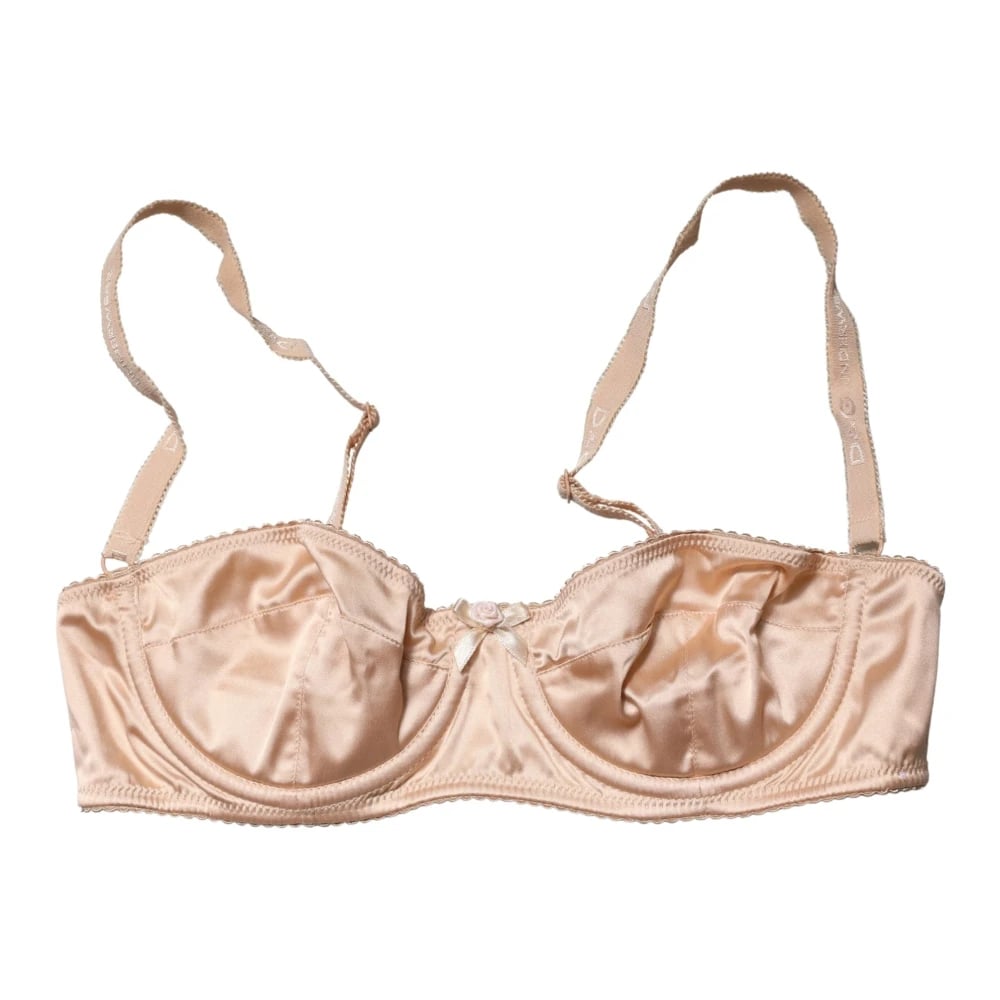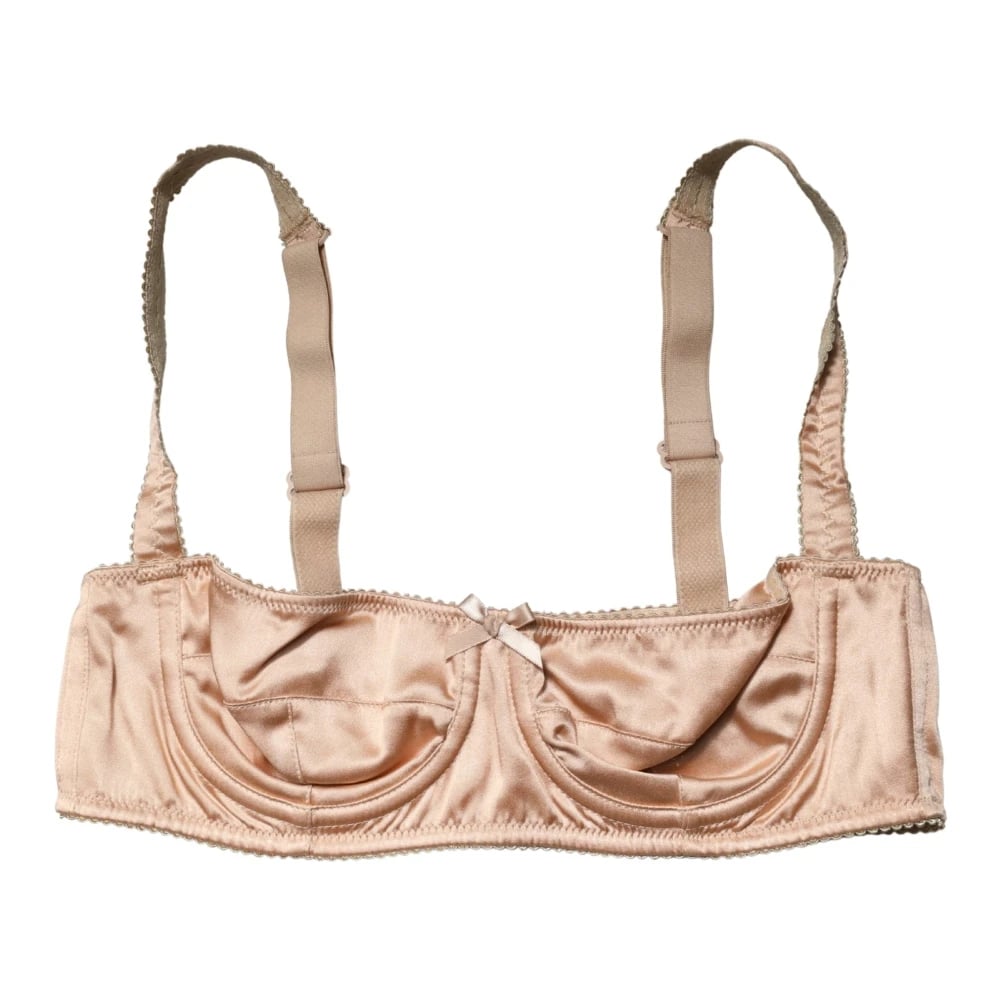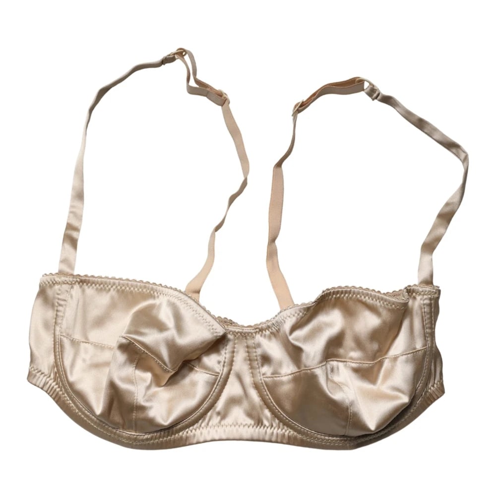 Dolce & Gabbana, Underkläder , Dam, M, Läder, Silke Balconette Bh Underkläder Beige