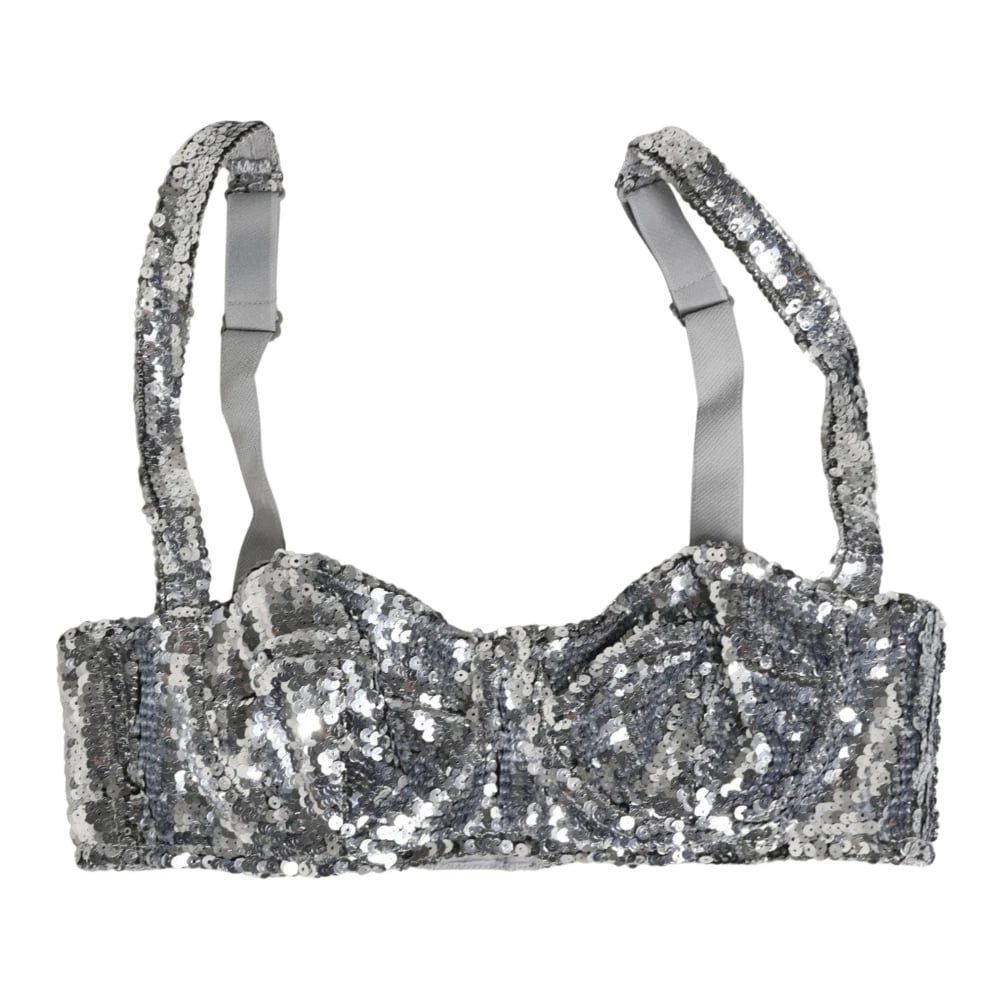 Dolce & Gabbana, Underkläder , Dam, S, Läder, Grå Silke Balconette Bh Underkläder
