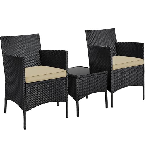 Yaheetech Balcony furniture set, garden furniture set 3 pieces. of PE polyrattan incl. 2 chairs with seat cushion and balcony table, patio furniture set, garden seating group lounge set for balcony