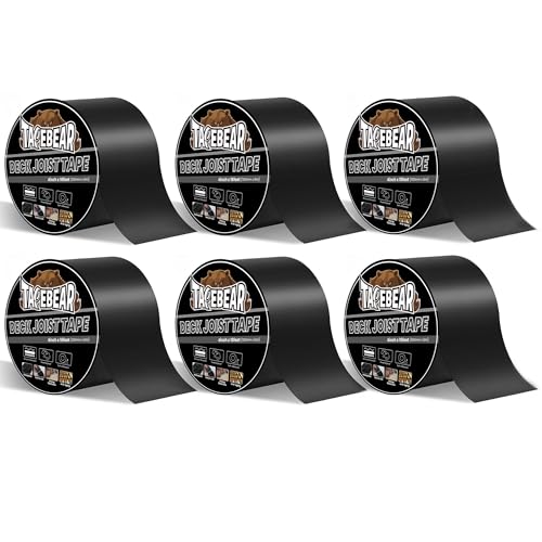TAPEBEAR Butyljoisttejp 50 mm x 5 m, däck, blinkande tejp, butyltätningstejp för trall underram, vattentät anti-korrosion väderbeständig tejp för trä, takdäck, balkar, fälg, 6 rullar