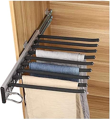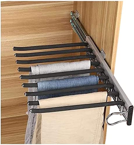 SanBouSi Rostfritt stål byxhängare byxutdrag klädstång utdragbar halkfri byxor klädhängare 9 balkar för garderob byxhängare platsbesparande (Right)