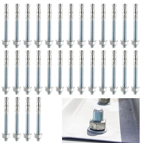 30 stycken bultankare M10 x 100 mm ankare för tung last, galvaniserade m10 tunga lastpluggar, m10 ankarskruvar av galvaniserat stål, ankarskruvar för räcken, fönster, gardinfasader, maskiner, balkar