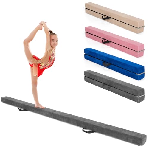 COSTWAY 210 cm svävande balkar, gymnastikbalkar, vikbara, balanstråle kan belastas upp till 70 kg, bärbar balk med bärhandtag, gymnastik balk för hemmet, gymnastik (grå)