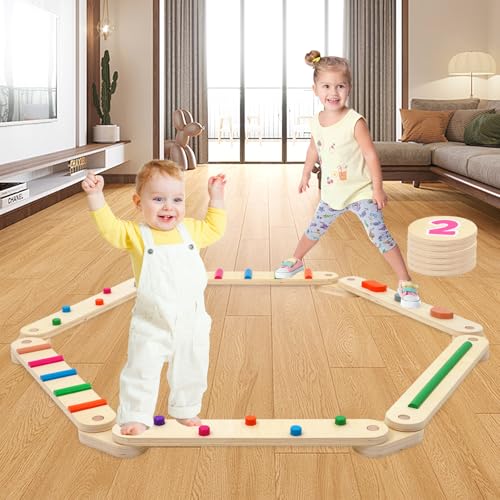 ACXIN Balansbalkar för barn av trä, Montessori leksak för barn från 3–7 år, flytande balkar med 6-delade hinderbanor för inomhus och utomhus, balansträning