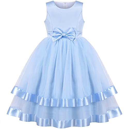Flickor Klänning Blå Fluga Fest Festtåg Balklänning Bröllop prinsessa 7 år