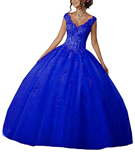 Carnivalprom Dam V-ringad Quinceanera klänningar med spets, aftonklänningar, långa bröllopsklänningar, elegant balklänning (kungsblå, 40), blå, 40