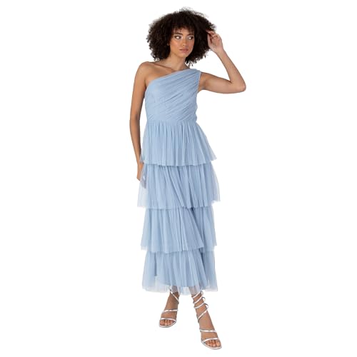 Anaya with Love Midaxi-klänning för kvinnor damer en axel ärmlös kjol för bröllop gäst brudtärna aftontillfälle balklänning, Mjuk blå, 42