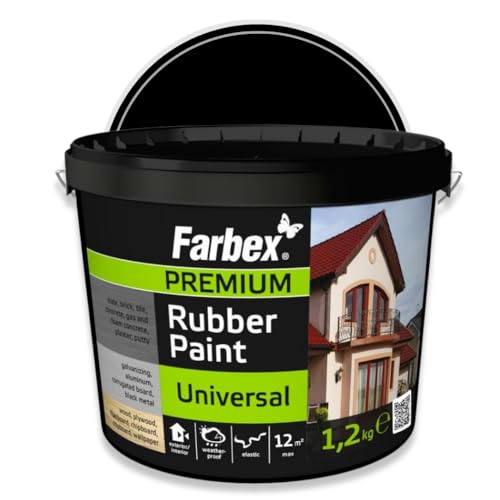 FARBEX Gummifärg För Inomhus Och Utomhus - Elastisk Vattentät Tätskiktfärg För Tak, Balkong, Betong Och Trä - 1,2 kg Svart - Ger Långvarigt Skydd Mot Fukt Och UV