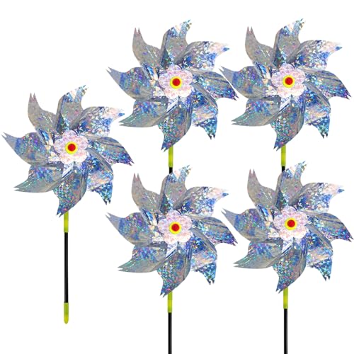 MOGADEE® 5 stycken vindturar fågelskrämma, reflekterande vindhjul, vindsnurra fågelskrämma, vindhjul, trädgård för balkong, fruktträdgård, innergård, tak, duvförsvar