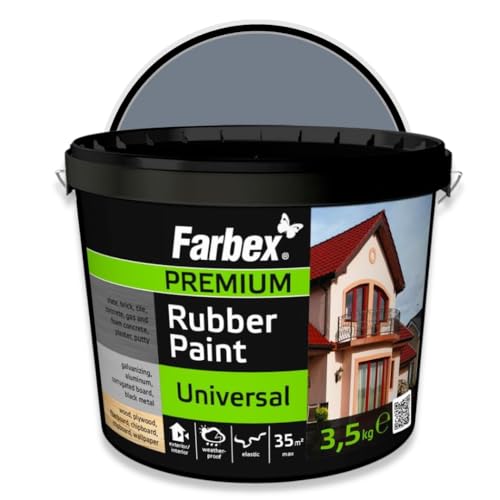 FARBEX Gummifärg För Inomhus Och Utomhus - Elastisk Vattentät Tätskiktfärg För Tak, Balkong, Betong Och Trä - 3,5 kg Grå - Ger Långvarigt Skydd Mot Fukt Och UV