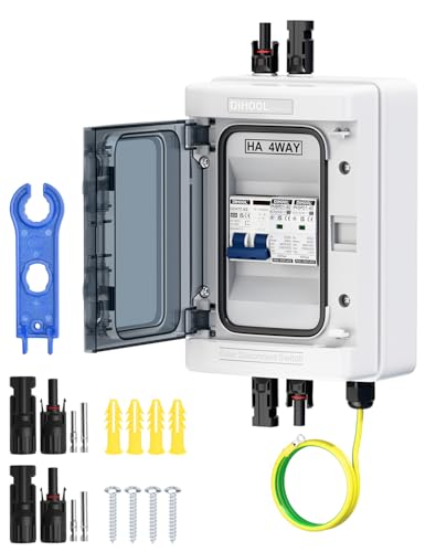 DIHOOL DC överspänningsskydd PV System Solar Connection Box för 2 * 600W solmoduler balkongkraftverk, DC Separator 40A 1000V