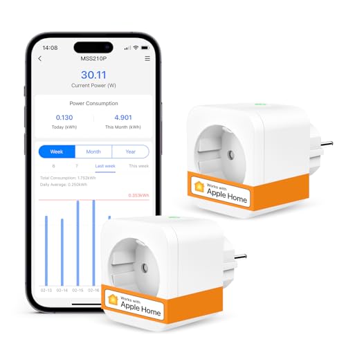 Refoss Smart Socket Fungerar med Apple HomeKit, WiFi-uttag med förbrukningsmätare, Timeruttag med fjärrkontroll, Elmätare Balkongkraftverk, med Alexa, Google, 2 stycken