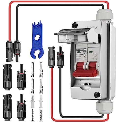 DIHOOL DC-brytare PV-system strömbrytare 30A 2-polig 30A med solkontakt Kabel IP65 vattentätt hus för balkongkraftverk batteri (30A, DC 1000V)