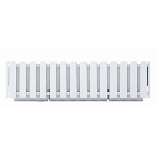 Prosperplast Boardee Fencycase balkonglåda med upphängning och bevattningssystem blomlåda blomkruka med krok planteringslåda (580 mm längd, vit)
