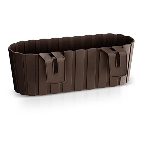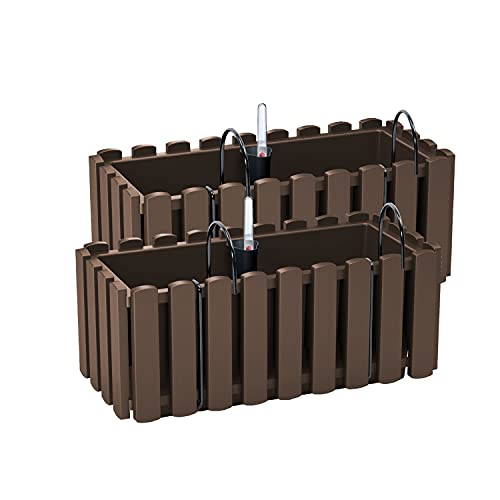 PAFEN 2 x blomlåda blomkruka med hållare – 38 x 18 x 16,2 cm – planteringskruka bevattningssystem balkonglåda, brun