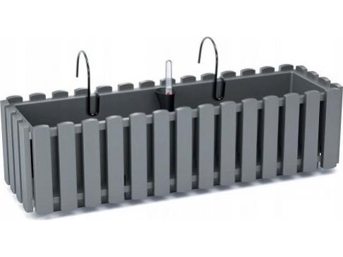 Prosperplast Boardee Fencycase balkonglåda med upphängning och bevattningssystem blomlåda blomkruka med krok planteringslåda (580 mm längd, grå)