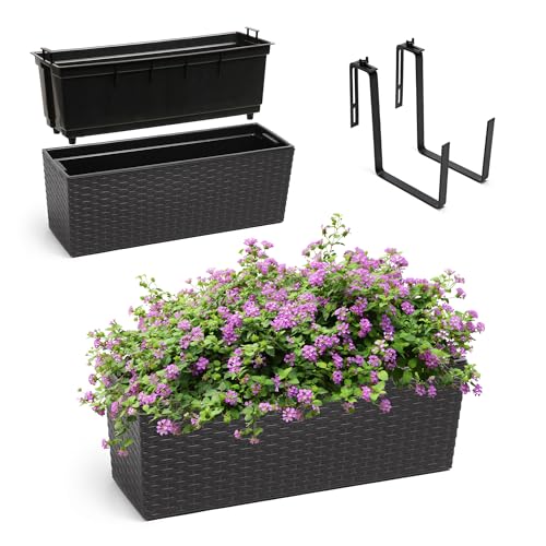 PAFEN 6 x blomlåda blomkruka rottingutseende med hållare blomkruka vattennivåindikator balkonglåda planteringslådor antracit