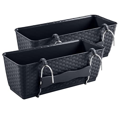 2 x balkonglåda med hållare – 492 x 172 x 174 mm – blomkruka med vattenbehållare i rottingutseende, planteringslådor, antracit
