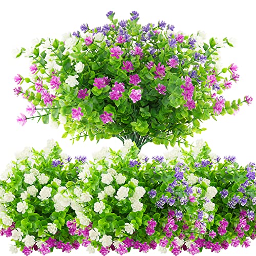 Konstgjorda blommor, konstgjorda blommor, utomhus, konstgjorda växter, bukett, växter, buskar, UV-beständiga balkongväxter som äkta för balkonglåda, inomhus, utomhus, trädgård, utomhus (6 stycken)