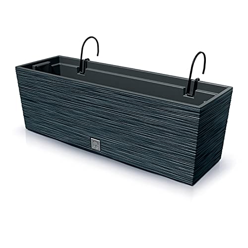 Kreher XL-balkonglåda, planteringslåda för balkongen med vattenbehållare, konstrotting av plast, i antracit, med flexibel metallhållare Mått: 56 x 18,5 x 19,5 cm.