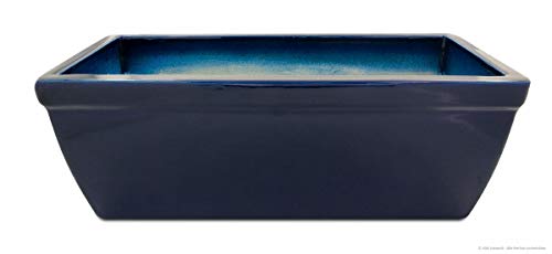 K&K Keramik balkonglåda, blomlåda, planteringslåda 38 x 20 x 18 cm av robust, väderbeständig, frostbeständig stengods keramik (blå)