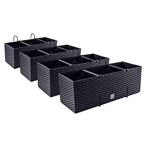 4 x blomlåda, blomkruka rottingutseende med hållare, planteringskruka, balkonglåda, planteringslådor, antracit