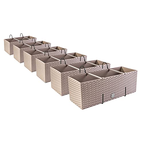 6 x blomlåda, blomkruka rottingutseende med hållare, planteringskruka, balkonglåda, planteringslådor, mocka