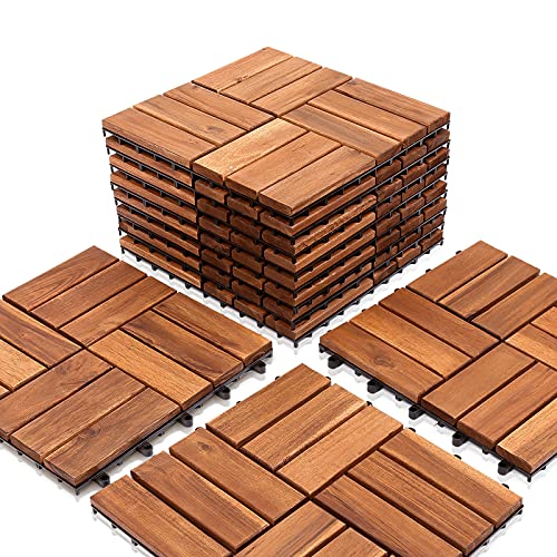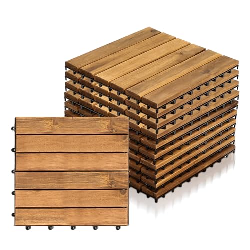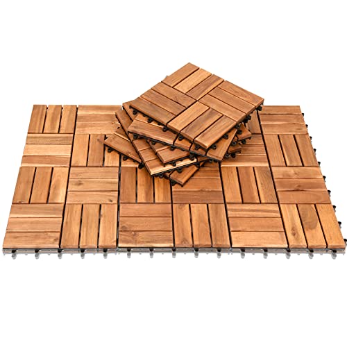 SWANEW Träplattor set med 11 kakelplattor, 1 m², lämpliga som terrassplattor och balkongplattor, av akaciaträ, 30 x 30 cm, för trädgård, terrass, balkong
