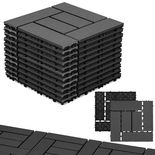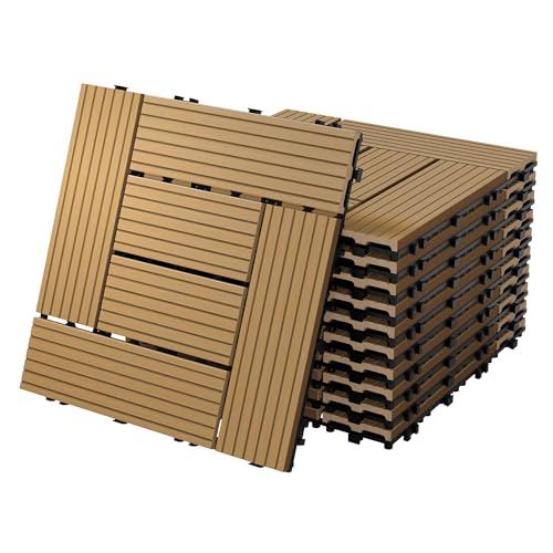 Fiqops 11 stycken WPC terrassplattor, 30 x 30 cm balkong golvplattor, trädgårdskakel med klicksystem, terrassbrädor, balkongplattor, klickplattor, terrassbrädor, vattentäta för terrass, för 1 m²