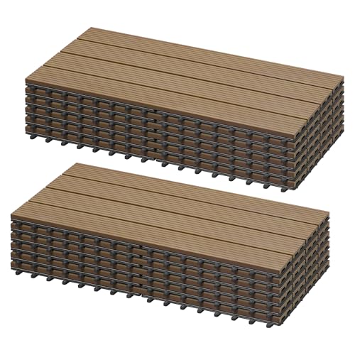 Laneetal WPC set med 12 plattor, terrassplattor, klickplattor, balkongplattor, 30 x 60 cm, balkong, golvbeläggning i träutseende med klicksystem och dränering
