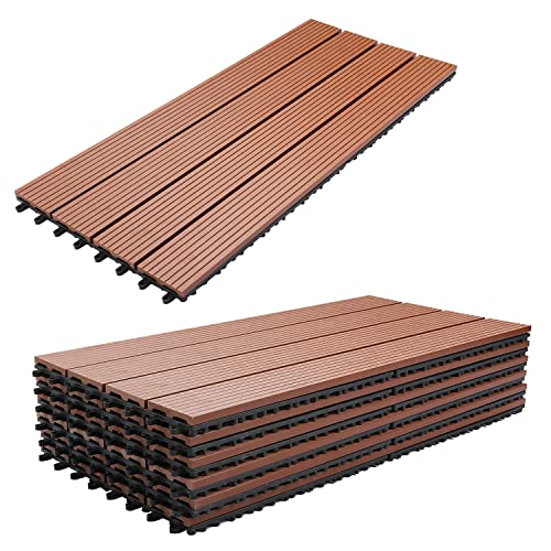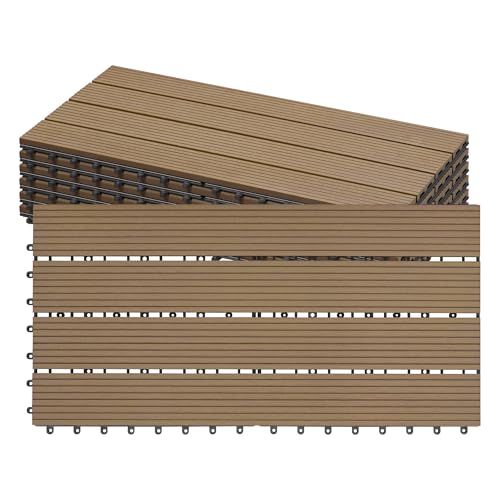Fiqops 36 stycken WPC terrassplattor, 30 x 60 cm balkong golvplattor, trädgårdskakel med klicksystem, terrassbrädor, balkongplattor, klickplattor, terrassbrädor, vattentäta för terrass, för 6 m²