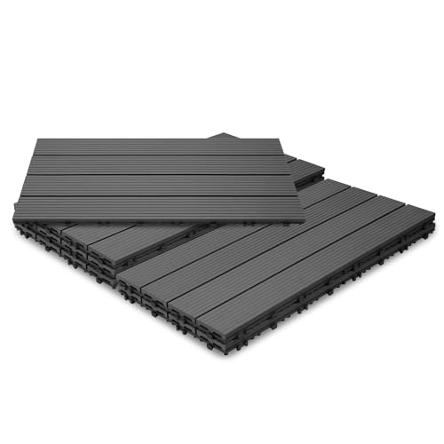 Randaco WPC terrassplattor, 30 x 30 cm, WPC-plattor, set om 11 m², balkongplattor, klicksystem, golvbeläggning för balkong och terrass, terrassbrädor, väderbeständiga med dränering, antracit