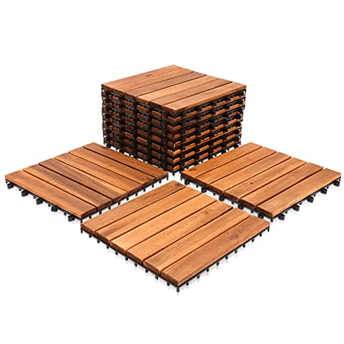 SWANEW Träplattor 33 st kakelset, 3 m², lämpliga som terrassplattor och balkongplattor, av akaciaträ, 30 x 30 cm, för trädgård, terrass, balkong