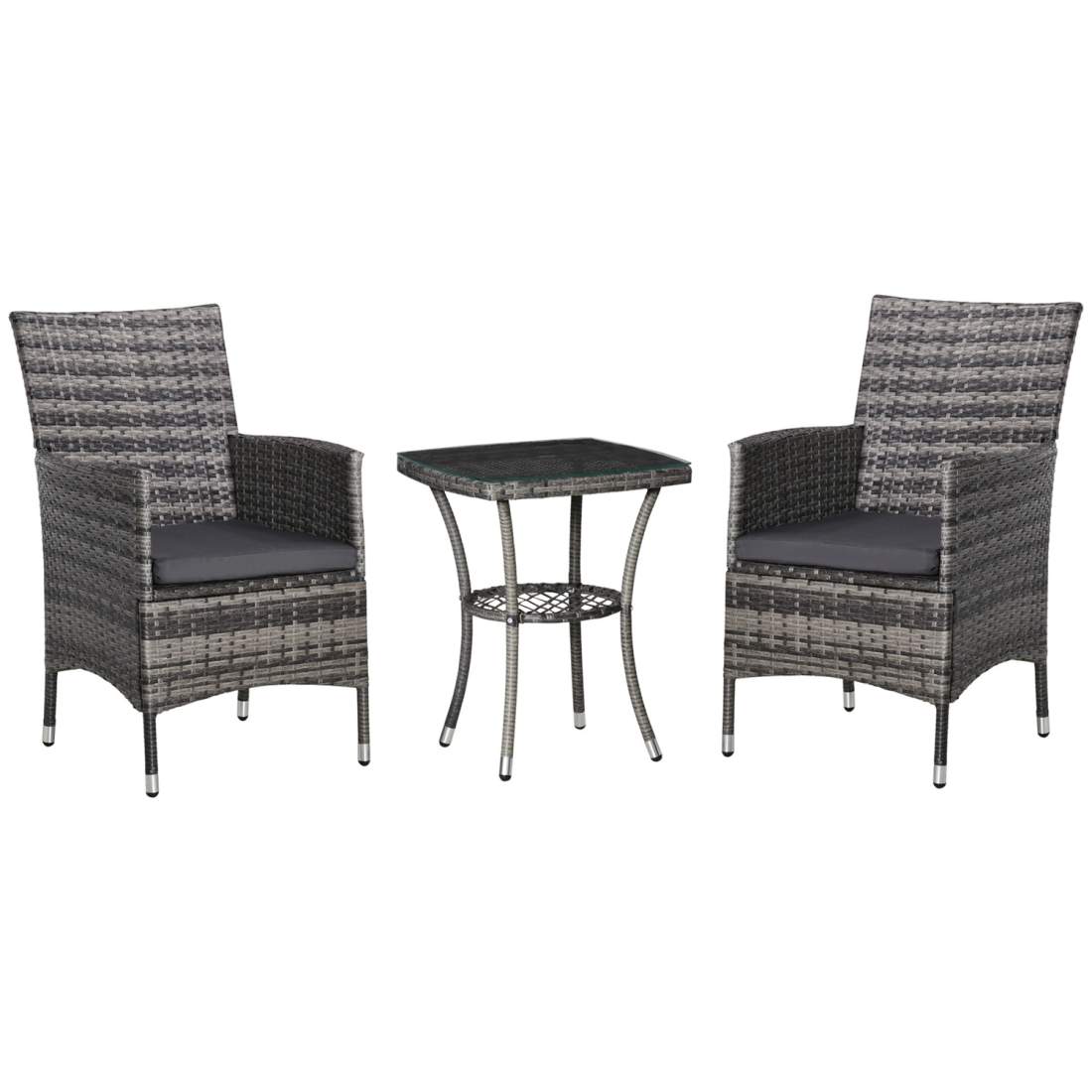 Grått Balkongset: Bord & 2 Stolar Med Dynor