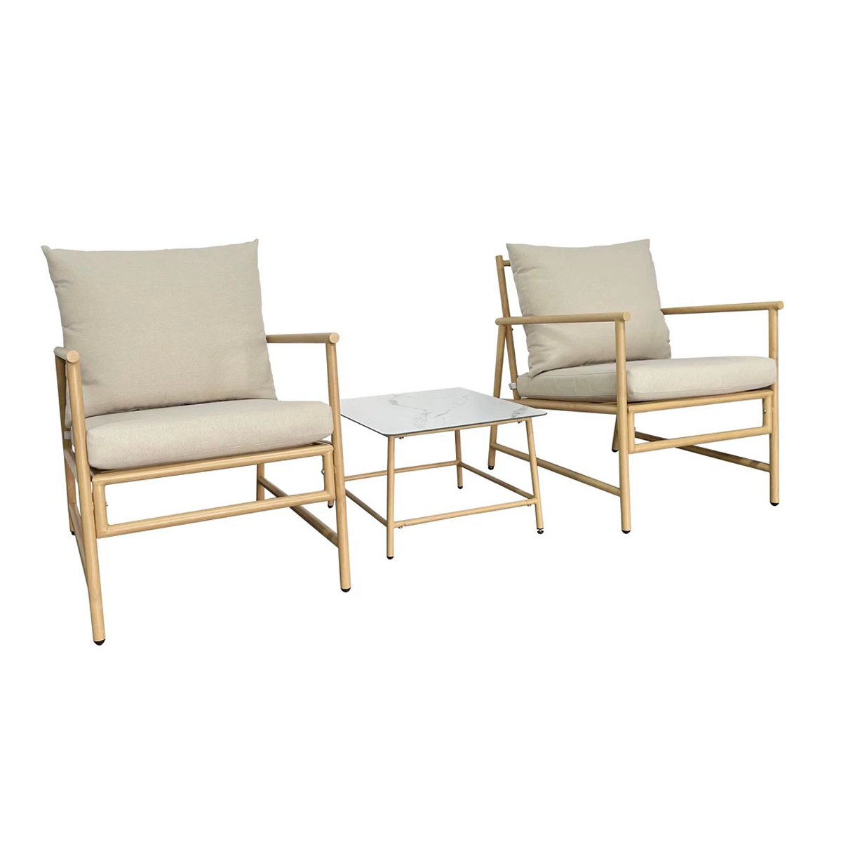 Väderbeständig trädgårdsmöbelset med aluminiumstomme och mjuka kuddar Balkongset med 2 stolar och bord
