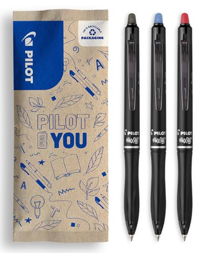 PILOT – Uppsättning av 3 FriXion Ball 07 Plus – raderbar rullpenna – infällbar och påfyllningsbar – tillverkad av återvunnen plast – svart, blå, röd – medium spets